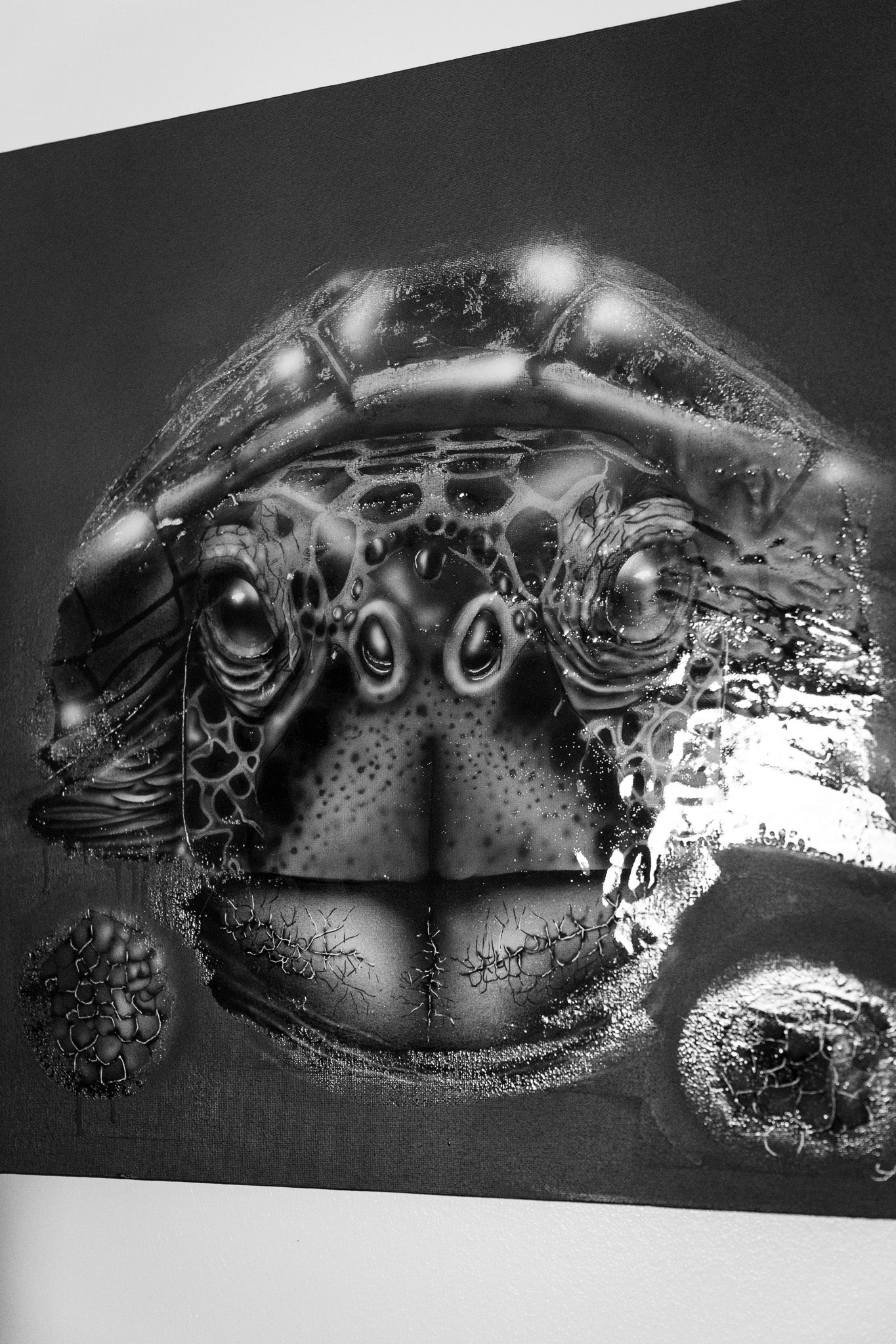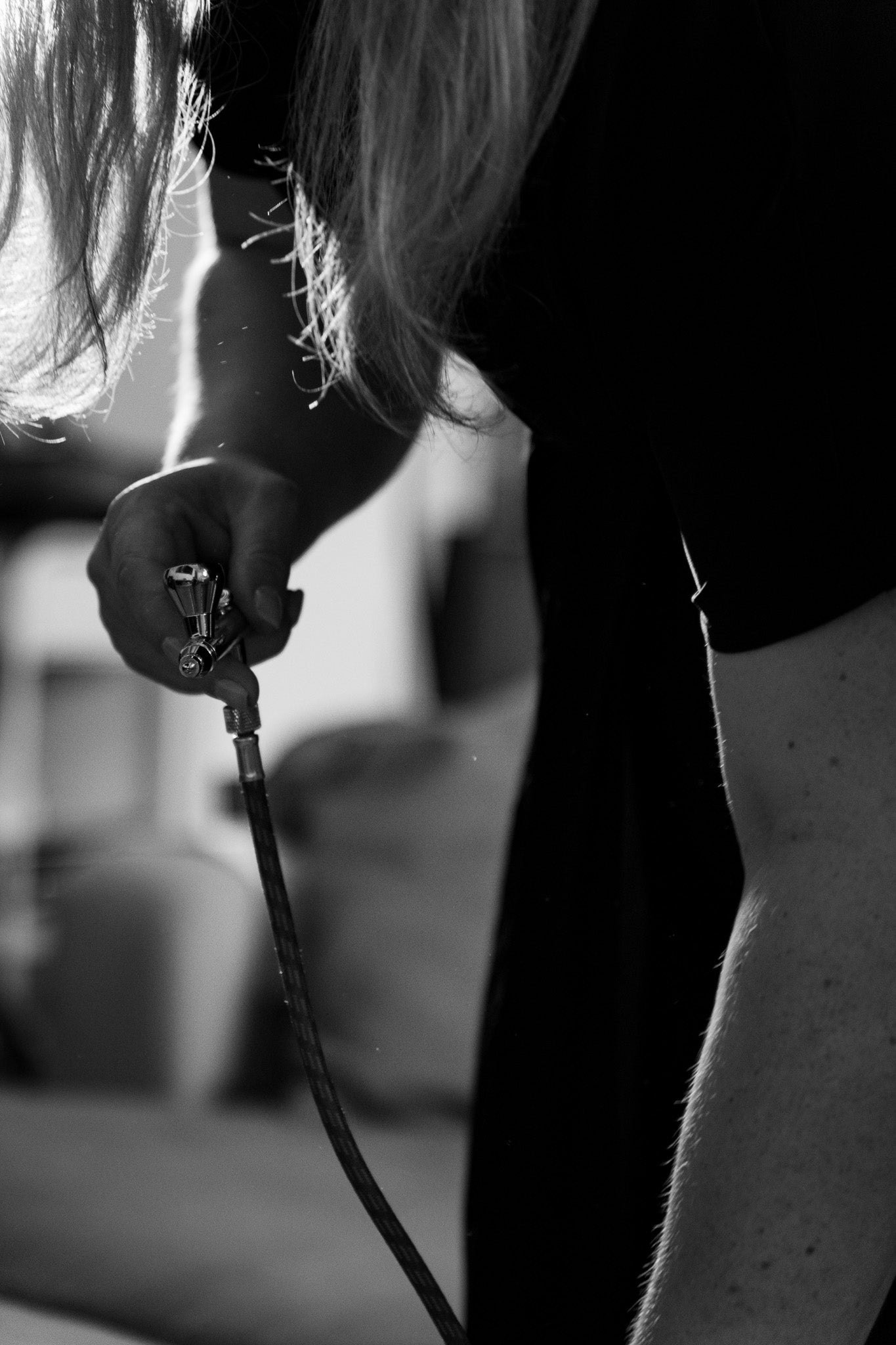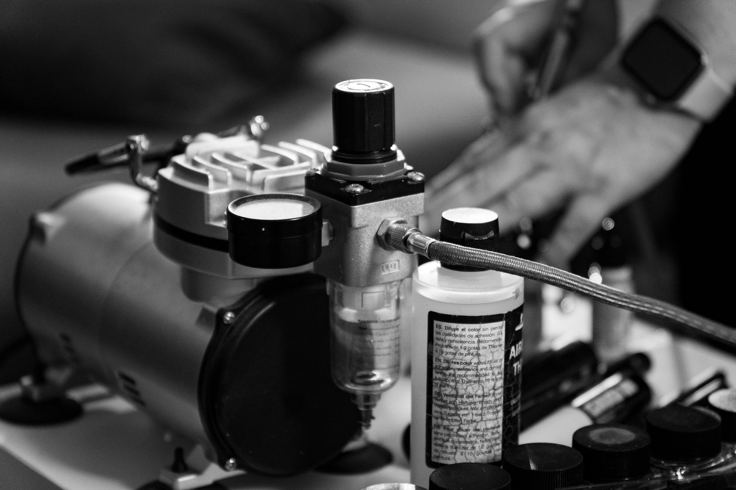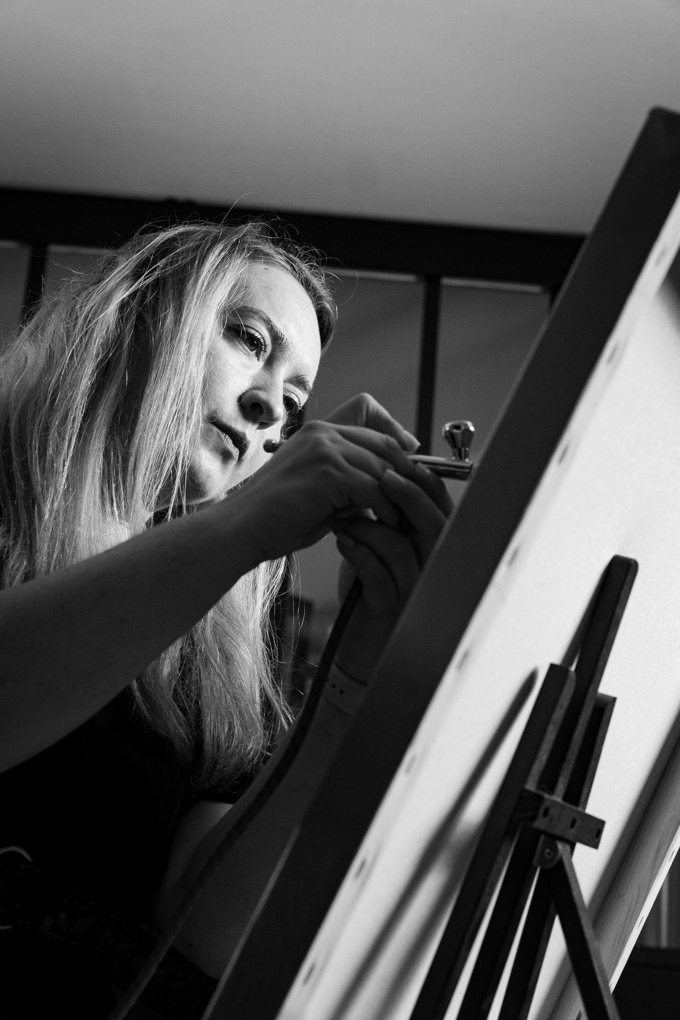 - L’aérographe, qui offre une maîtrise des nuances et des transparences, conférant légèreté et subtilité aux compositions.