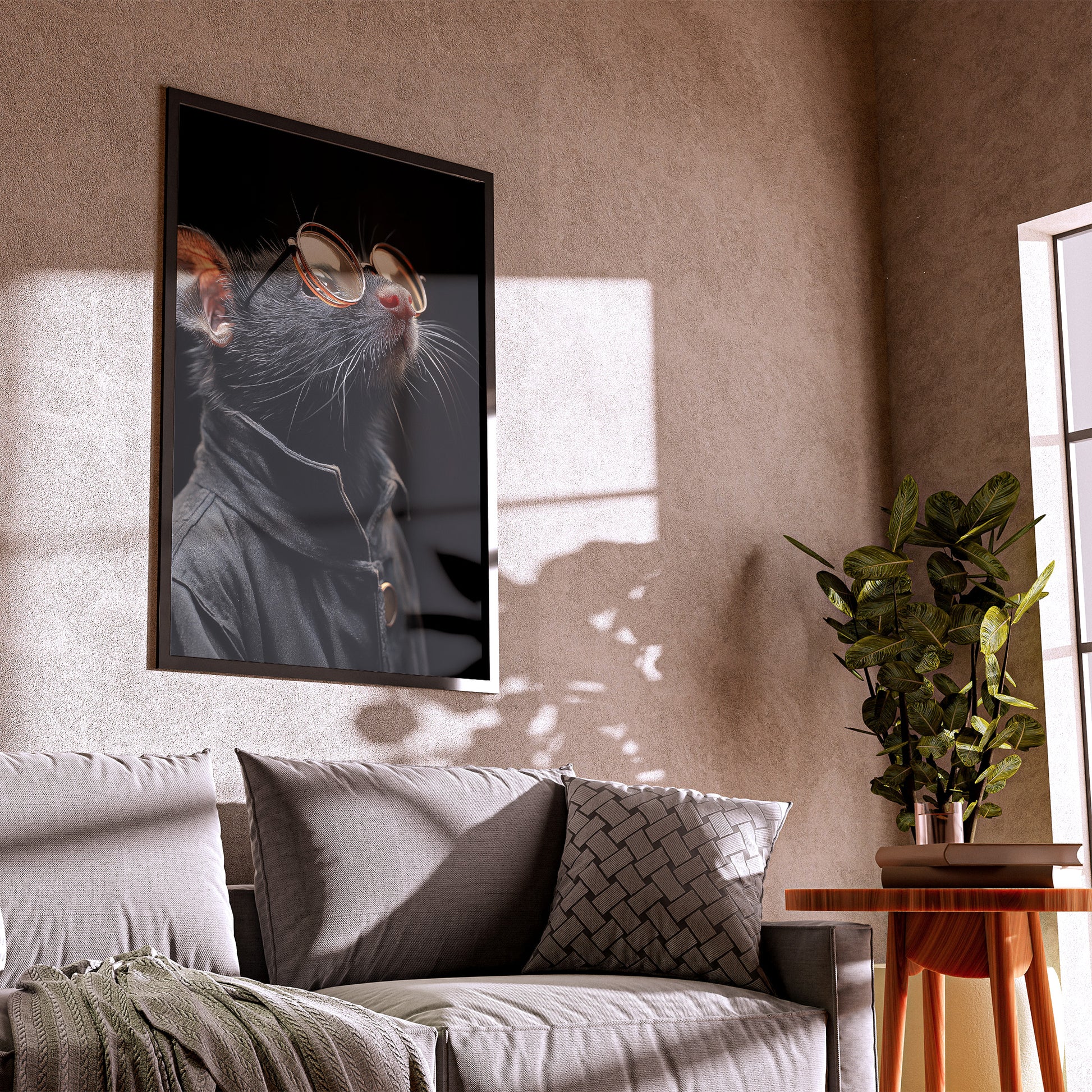 Dans cette série pleine de caractère, Puls revisite le règne animal avec une touche d’humour et d’élégance. Loups, lapins, chouettes, chats ou coqs prennent ici une allure singulière, vêtus avec style et coiffés de lunettes rondes, symbole d’intelligence et de curiosité.
